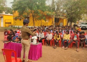 पोलिसांनी दिली शालेय विद्यार्थ्यांना शस्त्रास्त्रे व सायबर गुन्ह्यांची माहिती