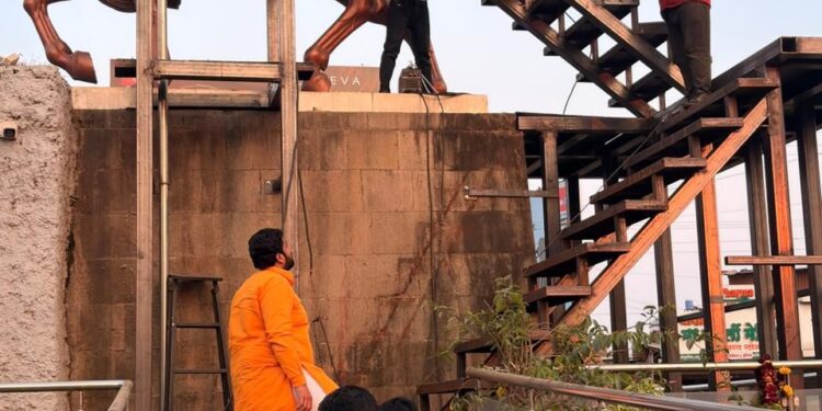 छत्रपती शिवाजी महाराज चौकात उभारण्यात येणाऱ्या ऐतिहासिक स्वराज्य ध्वजस्तंभाच्या कामाची तसेच मध्यवर्ती सार्वजनिक शिवजयंती निमित्त सुरू असलेल्या सुशोभीकरणाच्या कामाची पाहणी मध्यवर्ती शिवजयंती महोत्सव समितीचे अध्यक्ष आकाश मिलिंदराव कोकाटे यांनी केली.