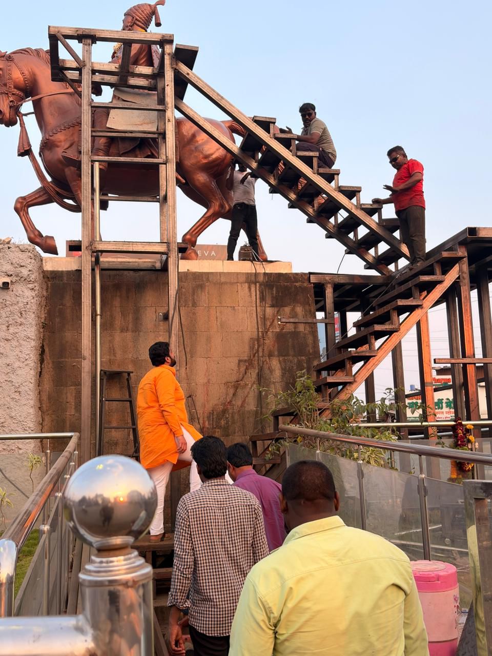 छत्रपती शिवाजी महाराज चौकात उभारण्यात येणाऱ्या ऐतिहासिक स्वराज्य ध्वजस्तंभाच्या कामाची तसेच मध्यवर्ती सार्वजनिक शिवजयंती निमित्त सुरू असलेल्या सुशोभीकरणाच्या कामाची पाहणी मध्यवर्ती शिवजयंती महोत्सव समितीचे अध्यक्ष आकाश मिलिंदराव कोकाटे यांनी केली.