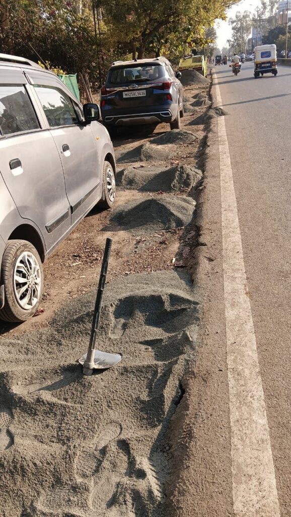 सार्वजनिक बांधकाम विभागामार्फत सुरू असलेल्या या कामात पीसीसी व बेड काँक्रीट न करता फक्त खोदकाम करून काम सुरू असल्याचे स्पष्टपणे दिसून येत आहे. काही ठिकाणी काम अर्धवट, तर काही ठिकाणी पूर्णपणे बंद अवस्थेत असून, फेरीवाले व स्थानिक विक्रेत्यांच्या आडून केवळ काम सुरू असल्याचा दिखावा केला जात असल्याचा आरोप निवेदनात करण्यात आला आहे.
