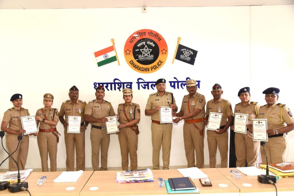 महाराष्ट्र पोलिसांतर्गत धाराशिव जिल्हा पोलिसांनी राबवलेल्या ऑपरेशन मुस्कान-14 मोहिमेत उल्लेखनीय कामगिरी केल्याबद्दल एएचटीयू (Anti Human Trafficking Unit) धाराशिव येथील अधिकारी व कर्मचारी यांचा विशेष सत्कार करण्यात आला. विशेष पोलीस महानिरीक्षक वीरेंद्र मिश्रा (छत्रपती संभाजीनगर परिक्षेत्र) यांच्या हस्ते हा सत्कार करण्यात आला. यावेळी जिल्हा पोलीस अधीक्षक रितू खोखर तसेच अप्पर पोलीस अधीक्षक शफकत आमना उपस्थित होते.