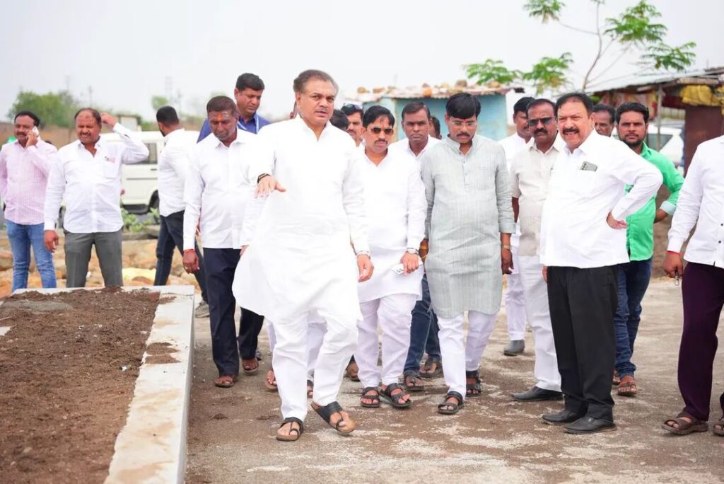 नळदुर्ग (प्रतिनिधी)अझहर शेख: आधुनिक महाराष्ट्राचे निर्माते आणि हरितक्रांतीचे जनक वसंतराव नाईक साहेब यांच्या स्मृतींना उजाळा देण्यासाठी नळदुर्ग येथील गोलाई चौकात (राष्ट्रीय महामार्गक्रमांक 65) उभारण्यात येत असलेले भव्य स्मारक शहराच्या सौंदर्यात आणि लौकिकात मोठी भर घालणार आहे. या महत्त्वाकांक्षी प्रकल्पाच्या कामाची आमदार राणाजगजितसिंह पाटील यांनी प्रत्यक्ष पाहणी केली. कामाच्या दर्जाबाबत व गतीबाबत प्रशासनाला महत्त्वपूर्ण सूचना दिल्या.दर्जेदार आणि वेळेत काम पूर्ण करण्याचे निर्देश,या पाहणी दौऱ्यादरम्यान आमदार महोदयांनी कामाच्या प्रगतीचा आढावा घेतला. “हे स्मारक नळदुर्ग शहराच्या वैभवात भर घालणारे ठरेलच, पण त्यासोबतच ते हरितक्रांतीच्या प्रेरणादायीइतिहासाची साक्ष देणारे आणि भावी पिढ्यांना मार्गदर्शन करणारे ऊर्जास्थान ठरेल,” असा विश्वास त्यांनी व्यक्त केला.हे काम अधिक भव्य, दर्जेदार आणि विहित वेळेत पूर्ण व्हावे, यासाठी त्यांनी नगराध्यक्ष व संबंधित अधिकाऱ्यांना स्पष्ट सूचना दिल्या.या पाहणीच्या वेळी लोकप्रतिनिधी आणि कार्यकर्त्यांची मोठी उपस्थिती होती. यामध्ये.सिद्धेश्वर कोरे (सभापती, जिल्हा परिषद) बसवराज अप्पा धरणे(नगराध्यक्ष). नय्यर पाशा जहागीरदार(उपनगराध्यक्ष)नळदुर्ग शहर, दीपक आलुरे, बांधकाम सभापती.पांडू तात्या पुदाले.आशिष सोनटक्के,विलास राठोड, भिवाजी इंगोले, विजय शिंगाडे, . बबन चौधरी, अंगद जाधव आणि इतर प्रमुख कार्यकर्ते व पदाधिकारी उपस्थित होते. हे स्मारक केवळ एक बांधकाम नसून, आधुनिक महाराष्ट्राच्या जडणघडणीत वसंतराव नाईक साहेबांनी दिलेल्या योगदानाचे जिवंत प्रतीक असेल.” —आ. राणाजगजितसिंह पाटील राष्ट्रीय महामार्गावर उभारले जाणारे हे भव्य स्मारक पर्यटनाच्या आणि शहराच्या सौंदर्यीकरणाच्या दृष्टीने मैलाचा दगड ठरणार असून, आमदार पाटील यांच्या या पुढाकाराचे सर्व स्तरांतून कौतुक होत आहे.